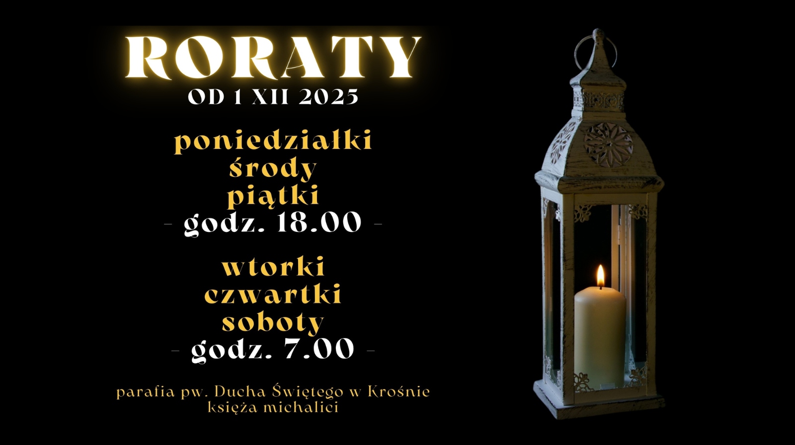 Bardzo ważnym elementem tego okresu są roraty, czyli Msze wotywne ku czci Najświętszej Maryi Panny, odprawiane z zasady o poranku w dni powszednie Adwentu (pierwsza Msza św. przed lub o wschodzie słońca). W naszej parafii Msze roratnie – ze względu na racje duszpasterskie – odprawiane są także wieczorem. Dzieci zapraszamy do udziału w procesji z lampionami.
