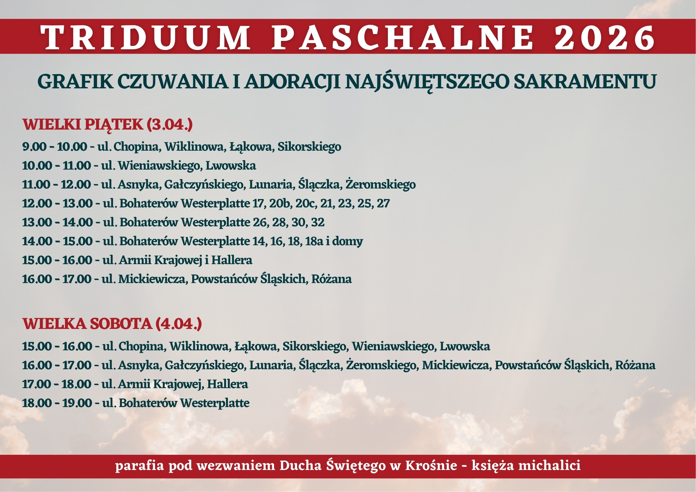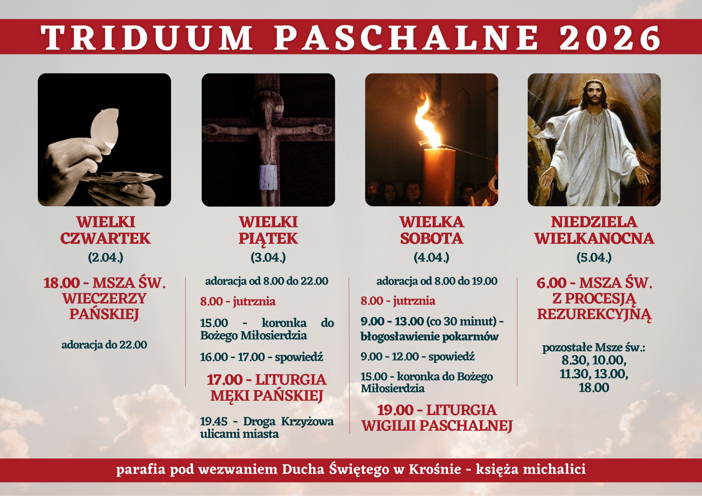 Oto program obchodów Triduum Paschalnego w naszej parafii.