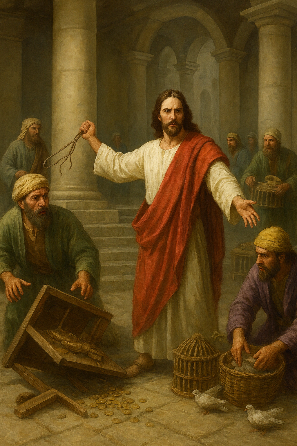 Gdy zbliżała się Pascha żydowska, Jezus udał się do Jerozolimy (J 2, 13-22). I zastał w świątyni sprzedających woły i owce, i gołębie, i siedzących za stołami bankierów.